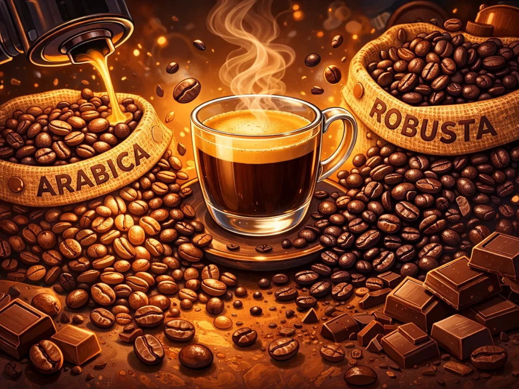 بهترین ترکیب عربیکا و روبوستا برای کرمای بیشتر و طعم شکلاتی | راهنمای کامل انتخاب بلِند حرفهای قهوه